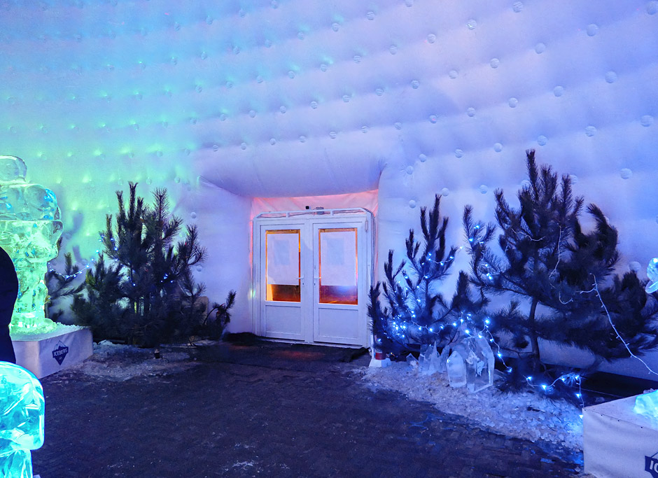 Сооружение изготовлено для выставки ледяных скульптур.
