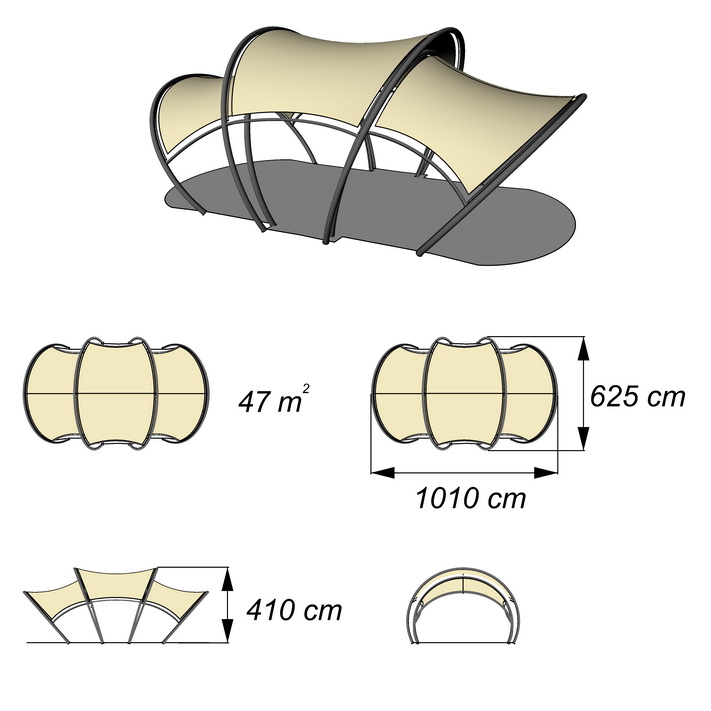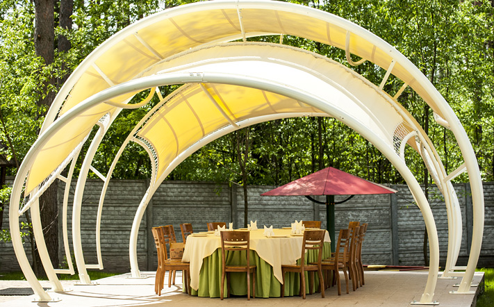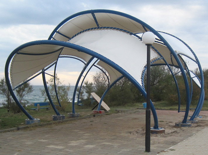 Предлагаем вам арочную шатровую конструкцию Ракушка. Это защита от солнца и непогоды. Специалисты нашей компании спроектируют конструкцию под ваши задачи.