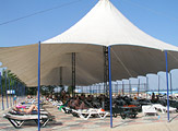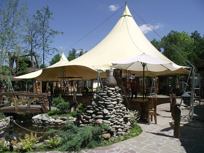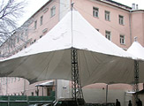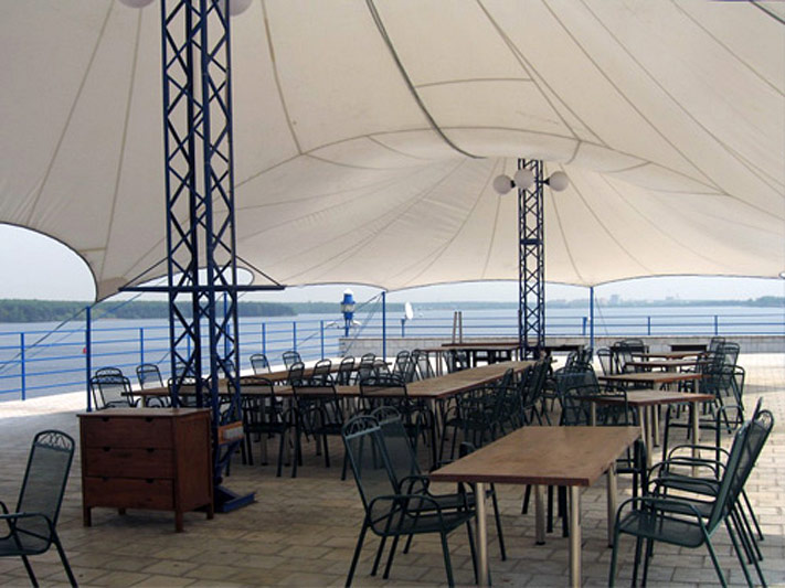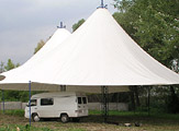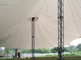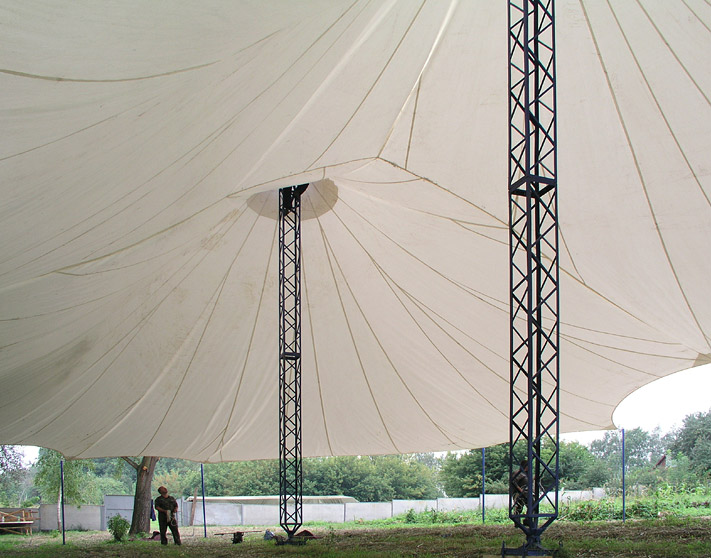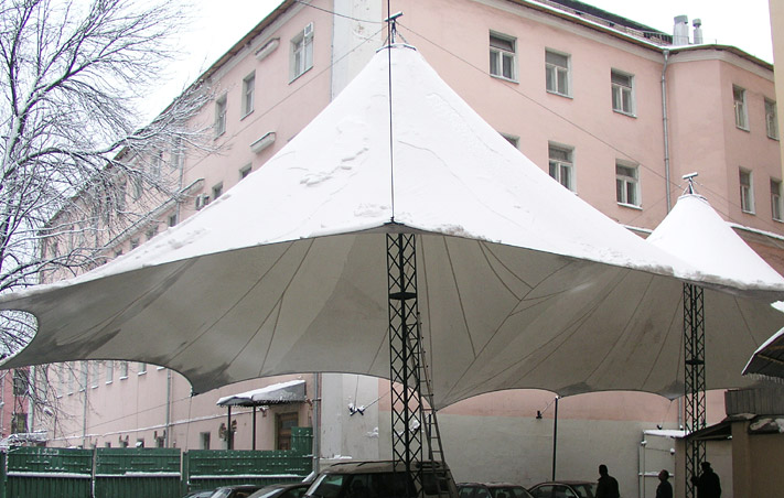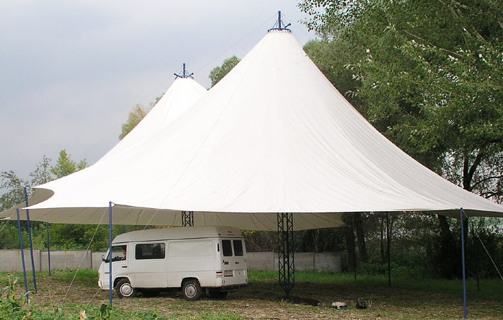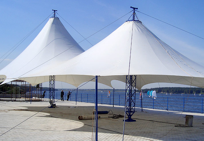 Мачтовые Шатры Стрела широко распространены на рынке тентовых конструкций. Шатром такой конструкции можно покрыть площадь любого размера.