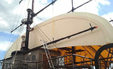 Каркас шатра изготовлен из стальных пространственных ферм, оболочка из армированной ПВХ ткани.