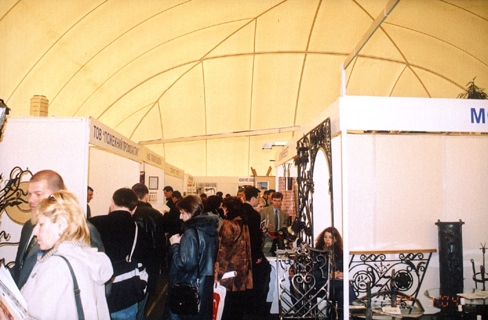 В этом сооружении проходила одна из крупнейших строительных выставок (Украина, г. Киев). Особенностью этого сооружения является балластная система крепления к грунту. В качестве балласта используются баллоны с водой, выложенные по периметру здания. Такая система не требует фундамента, и позволяет перевозить конструкцию с места на место. Дата строительства 2004 г.